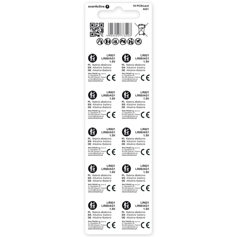 EVAG1 AG1 Batteries - Alkaline - LR621 - 10 Pieces
